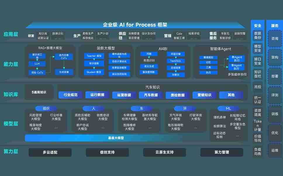 尊龙z6问学智车解决方案是一套基于AI技术的汽车行业智能化系统,,覆盖从底层算力到顶层AI应用的全栈方案。。。方案由算力层、、、模型层和应用层组成:算力层,,,,方案支持多种一体机配置,,具备云端灵活部署、、、多云适配以及动态优化计算资源的能力;模型层,,,,尊龙z6问学平台版提供了企业级AI应用一站式构建与管理平台,,支持基于后训练强化技术的汽车企业专属模型的训练、、评测和运营;应用层,,,,尊龙z6问学DeepSeek版提供包括超级员工、、、智能招采、、、智能营销、、智能客服、、、AI for BI等一系列解决方案,,可助力汽车行业实现数字化转型,,让管理更智能、、、、响应更敏捷。。